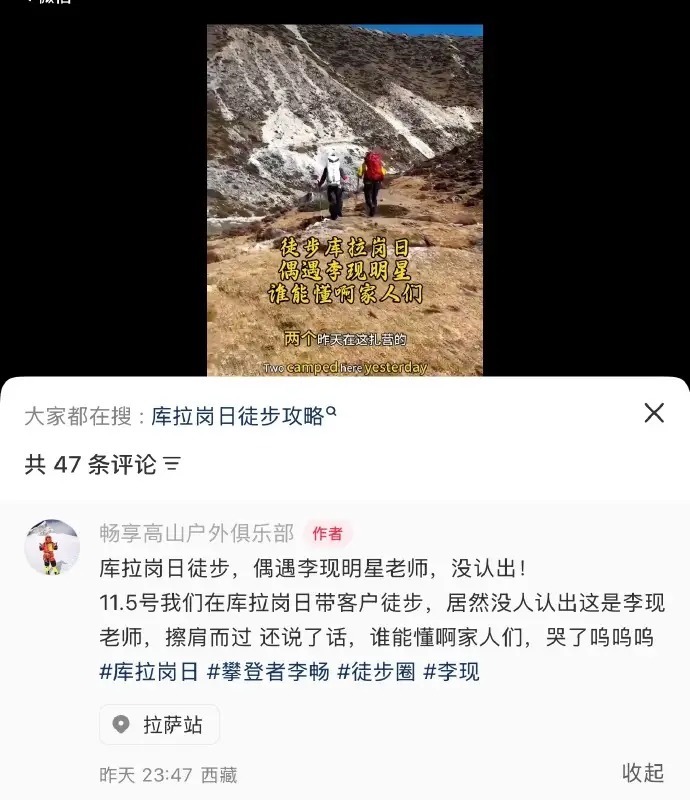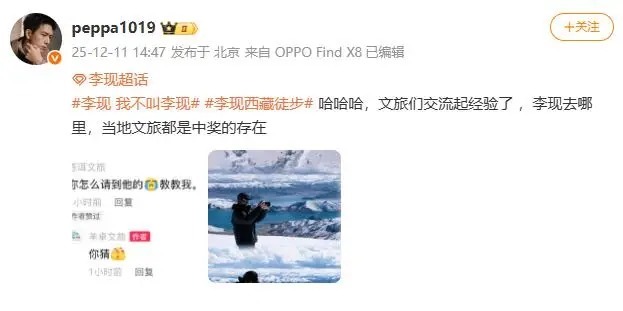 更值得玩味的是,这次事件不再是明星单向输出,而是全民参与的二创狂欢。网友建议下次喊他“韩商言”(其经典角色)测试反应,伊利官微玩梗“别不承认了”,还有人把“李现”玩成“李馅儿”“李王见”,谐音梗满天飞。就连西藏文旅都顺势推出“李现同款徒步路线”,南宁晚报、卡地亚等官号也联动互动,网友调侃:“文旅部门已经开始交流打卡经验了。”虽然因冬季积雪,路线暂封,但预约咨询量已翻倍,足见其带动力。